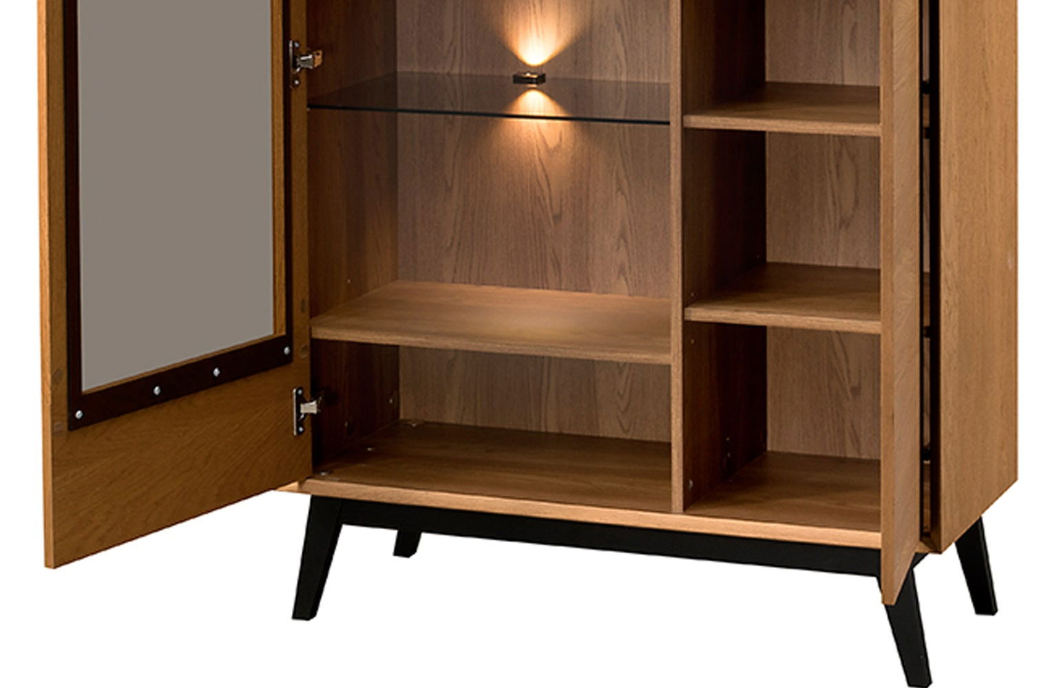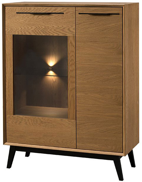 Η κομψή βιτρίνα Chervil 2D short φέρνει μια πινελιά μοντέρνας γοητείας σε κάθε σαλόνι. Το ζεστό ξύλινο φινίρισμα και τα γωνιακά πόδια δημιουργούν μια εμφάνιση εμπνευσμένη από το ρετρό. Η γυάλινη πόρτα με ενσωματωμένο φωτισμό προβάλλει τα αγαπημένα σας συλλεκτικά αντικείμενα και προσθέτει μια ζεστή λάμψη στο χώρο σας.