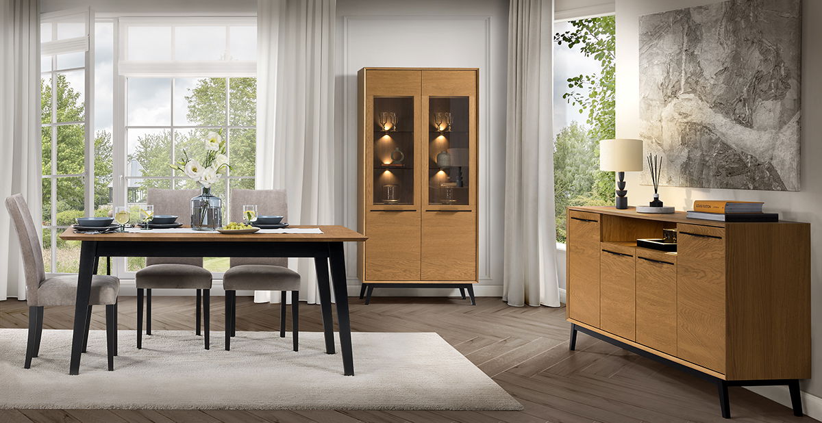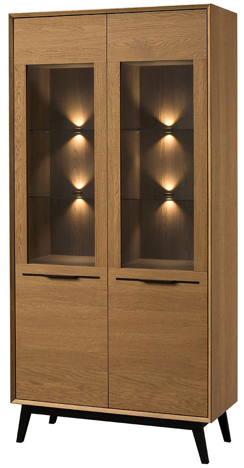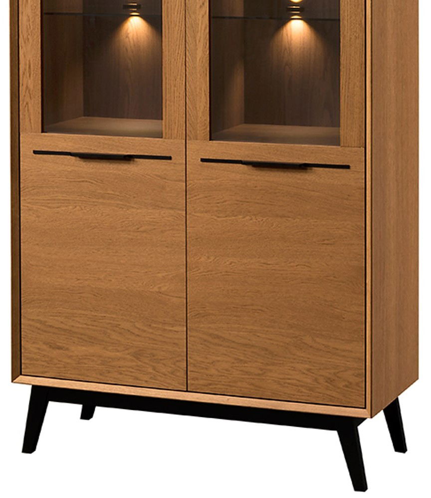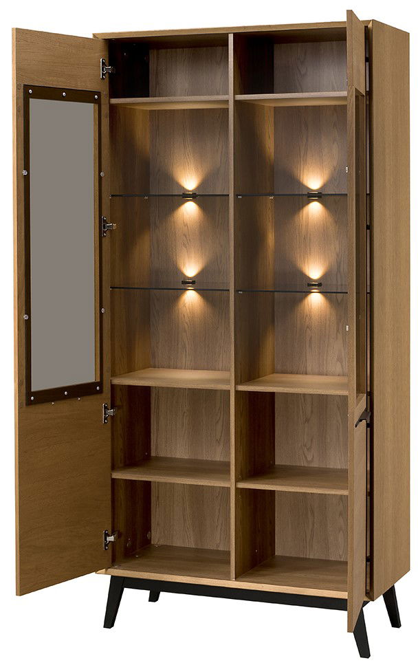 Η κομψή βιτρίνα Chervil 2D φέρνει μια πινελιά μοντέρνας γοητείας σε κάθε σαλόνι. Το ζεστό ξύλινο φινίρισμα και τα γωνιακά πόδια δημιουργούν μια εμφάνιση εμπνευσμένη από το ρετρό. Η γυάλινη πόρτα με ενσωματωμένο φωτισμό προβάλλει τα αγαπημένα σας συλλεκτικά αντικείμενα και προσθέτει μια ζεστή λάμψη στο χώρο σας.