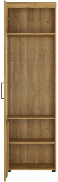 Η βιτρίνα της σειράς Cognac είναι φτιαγμένη για να εντυπωσιάζει. Διαθέτει μεγάλη πόρτα με γυάλινη πρόσοψη και γυάλινα ράφια στο εσωτερικό, όπου μπορείτε να τοποθετήσετε αντικείμενα και διακοσμητικά που θέλετε να εκθέσετε. Χάρη στους μεταλλικούς μεντεσέδες με αθόρυβο κλείσιμο, η βιτρίνα είναι ανθεκτική στο χρόνο και ιδιαίτερα πρακτική και εύκολη στη χρήση.