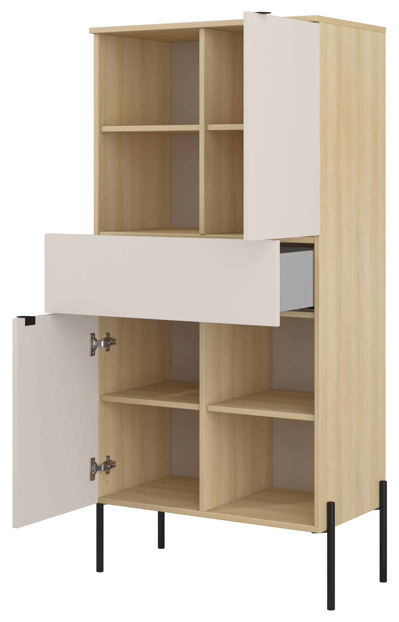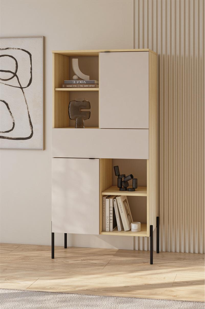 Διαθέτει ευρύχωρα κλειστά ντουλάπια που προστατεύουν τα αντικείμενά σας από σκόνη και ακαταστασία, καθώς και πρακτικά ανοιχτά ράφια για την τοποθέτηση βιβλίων, διακοσμητικών ή αντικειμένων που θέλετε να προβάλλετε. Η εσωτερική διαρρύθμιση επιτρέπει την άνετη αποθήκευση τόσο μικρών όσο και μεγαλύτερων αντικειμένων, αυξάνοντας σημαντικά τη χρηστικότητα του επίπλου. Συνδυάστε την με τα υπόλοιπα έπιπλα της ίδιας σειράς για ένα ομοιόμορφο αποτέλεσμα.
