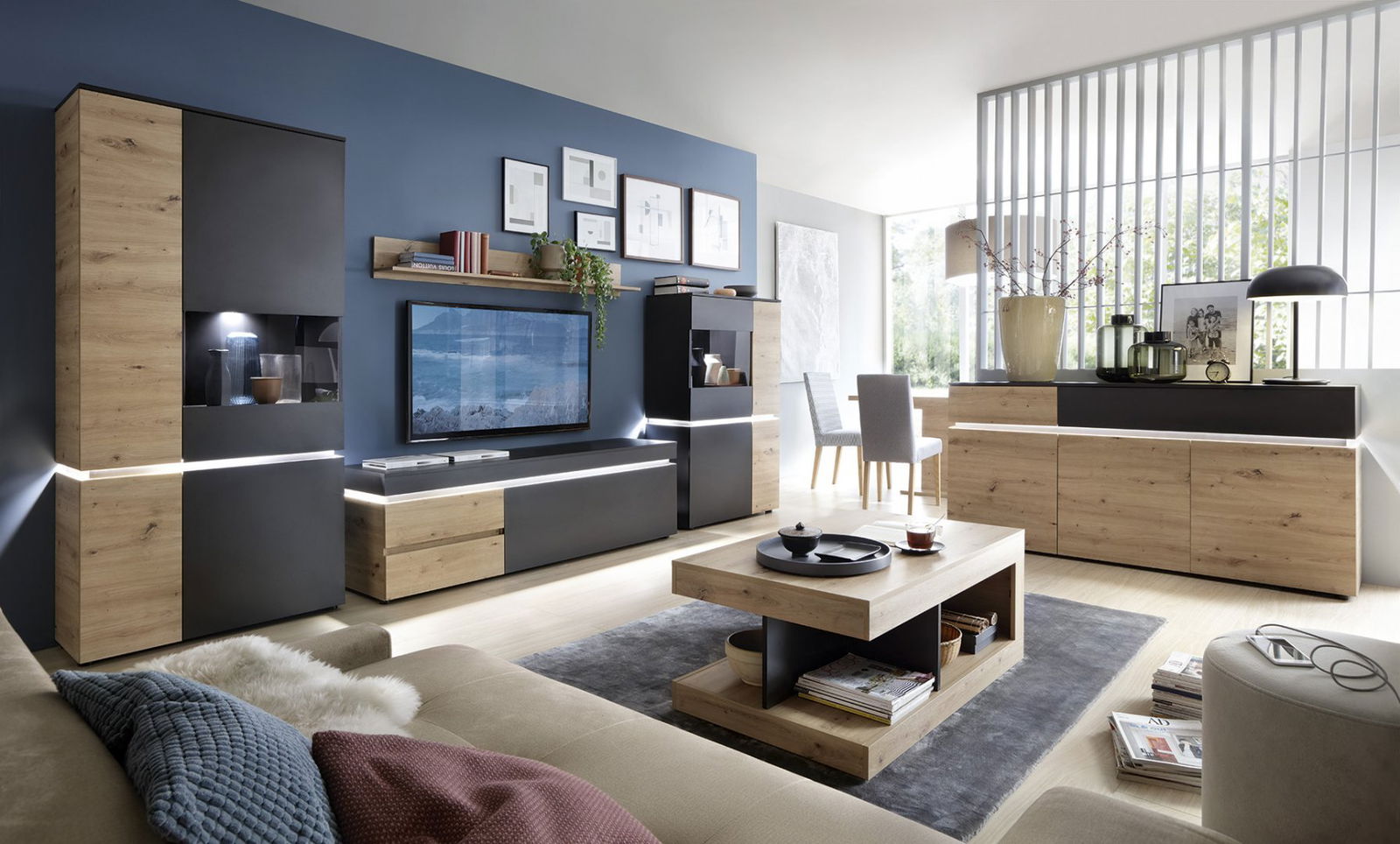 Βιτρίνα Glimmer ψηλή, σε αποχρώσεις μοντέρνας διχρωμίας που προσδίδουν επιβλητικό στυλ και θα ανανεώσουν την αισθητική του χώρου σας, ιδανική για κάθε σαλόνι χάρη στο μεγάλο αποθηκευτικό χώρο και τις πρακτικές της διαστάσεις.