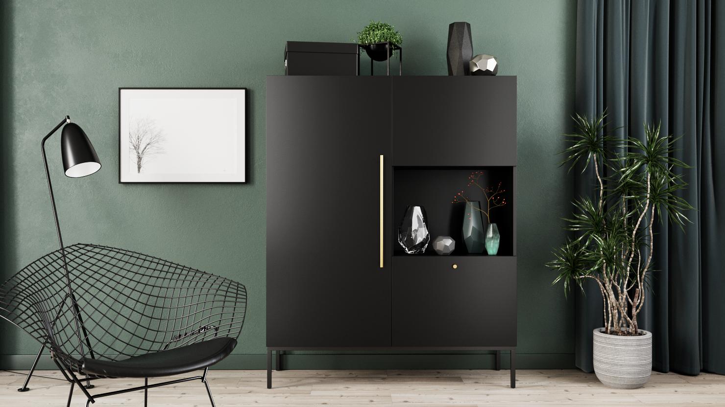 Βιτρίνα Lazzy μίνιμαλ και μοντέρνου σχεδιασμού με αρκετούς χώρους αποθήκευσης. Συνδυάστε το με τα υπόλοιπα έπιπλα της ίδιας σειράς για ενα ομοιόμορφο αποτέλεσμα.