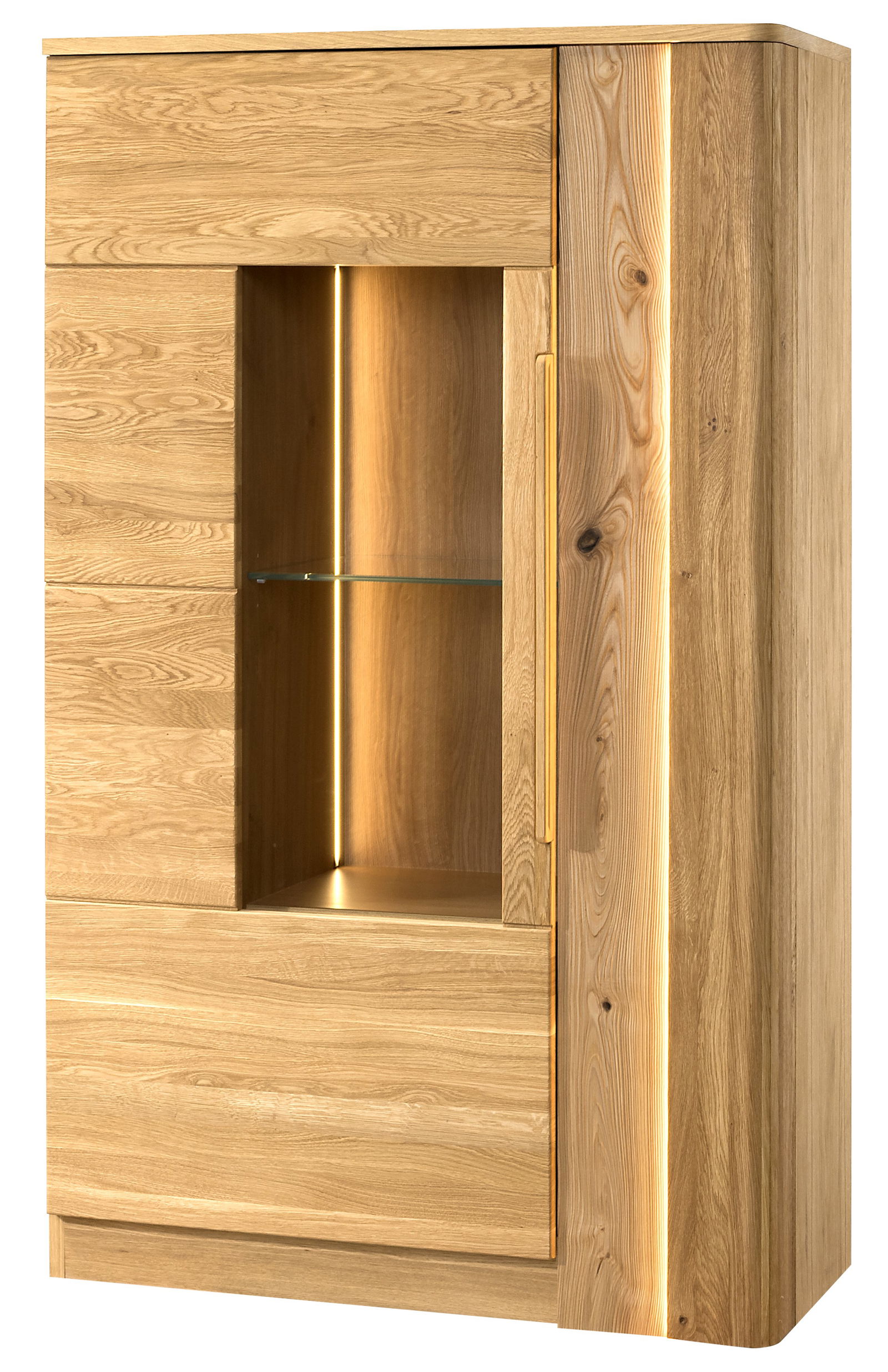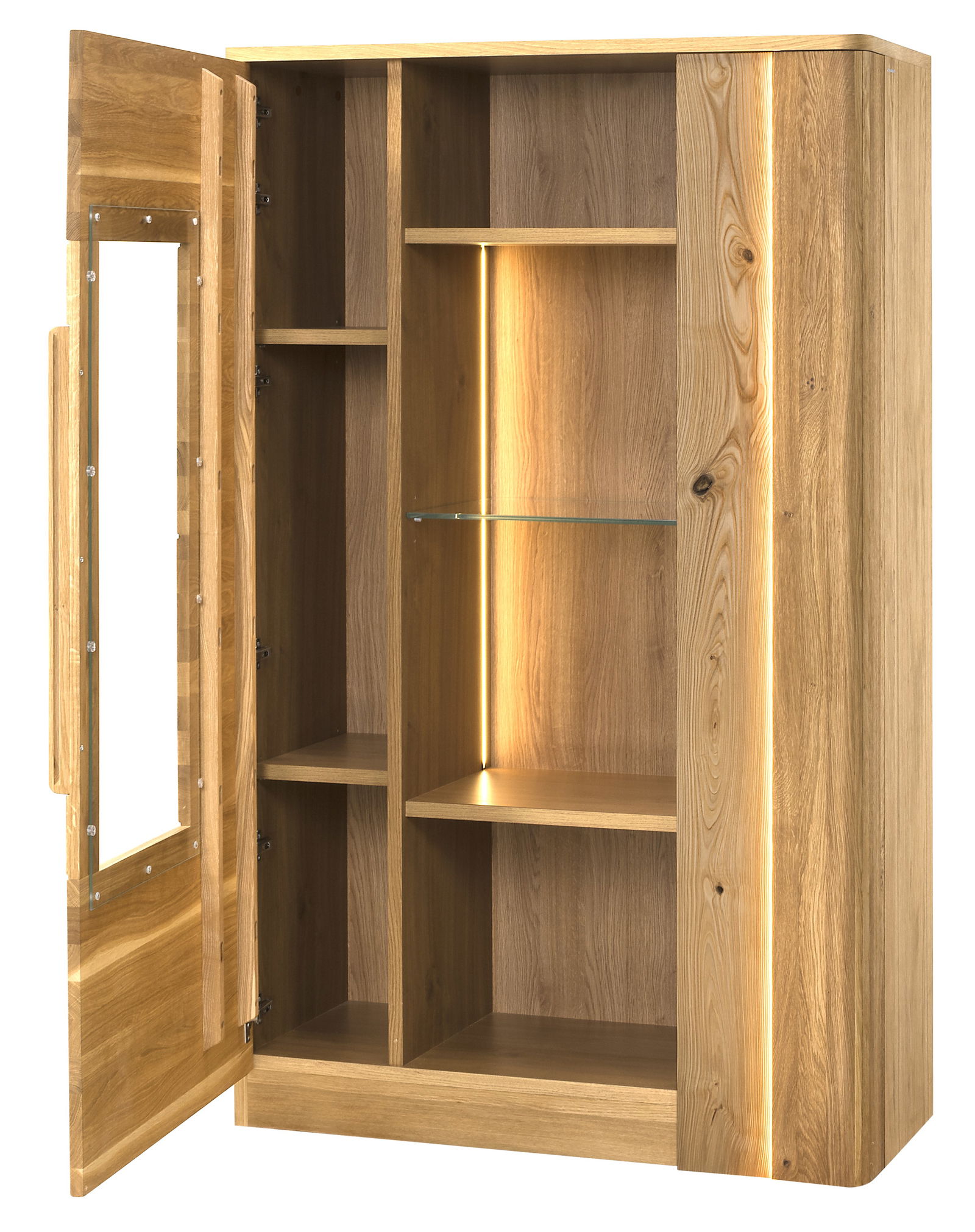 Αναβαθμίστε τη διακόσμηση του σπιτιού σας με αυτή την εκπληκτική Βιτρίνα Mayfair III. Κατασκευασμένη από εξαιρετικής ποιότητας ξύλο δρυός, αυτό το κομμάτι αποπνέει μια διαχρονική κομψότητα και ζεστασιά. Ο μοναδικός καμπυλωτός σχεδιασμός της βιτρίνας προσθέτει μια πινελιά εκλέπτυνσης, ενώ η γυάλινη πόρτα με φωτισμό LED αναδεικνύει όμορφα τα πολύτιμα υπάρχοντά σας.