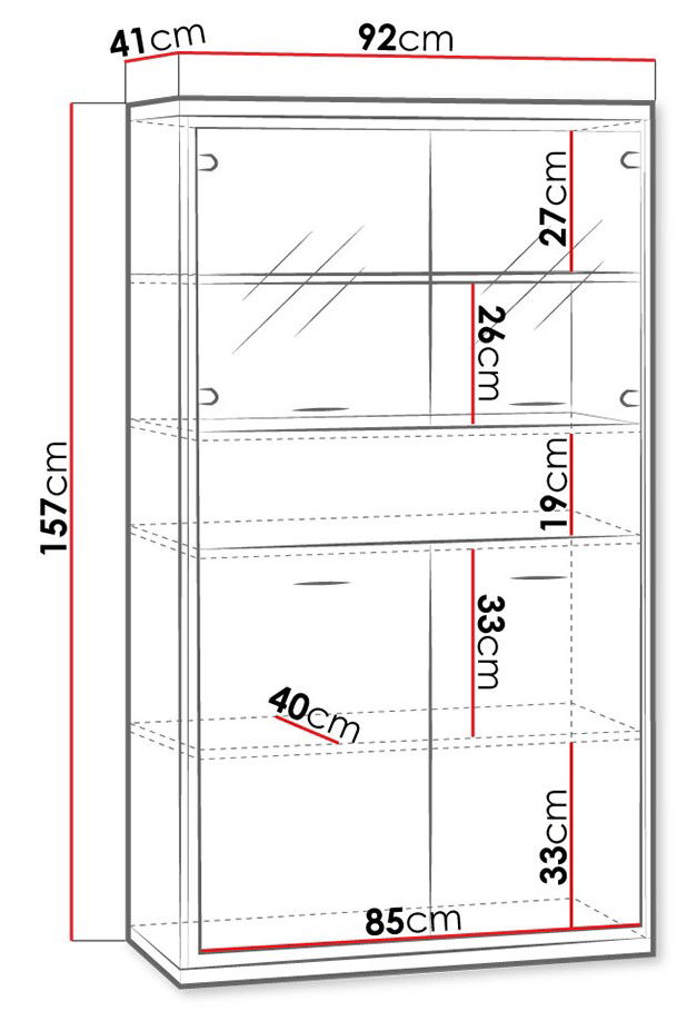 – Βιτρίνα με τρεις αποθηκευτικούς χώρους