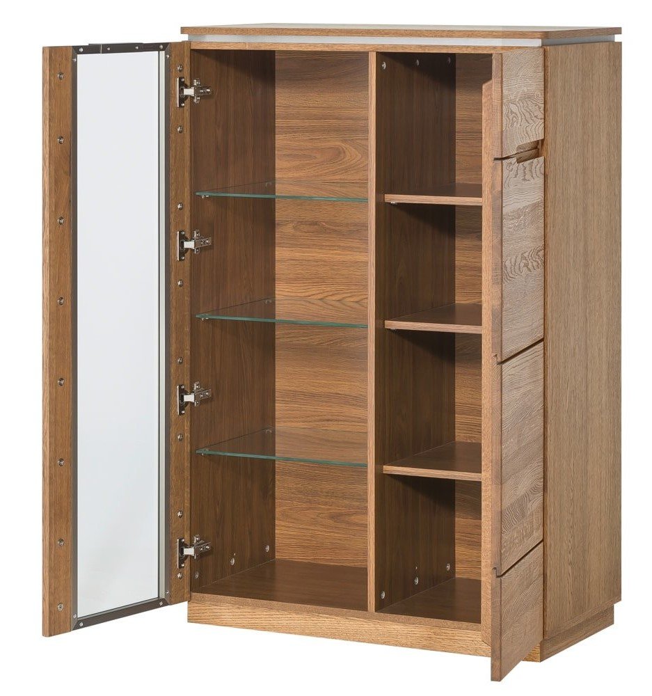 Βιτρίνα Montero Mini λιτού και πρακτικού σχεδιασμού σε απαλό φυσικό χρωματισμό, ιδανική για μικρούς χώρους
