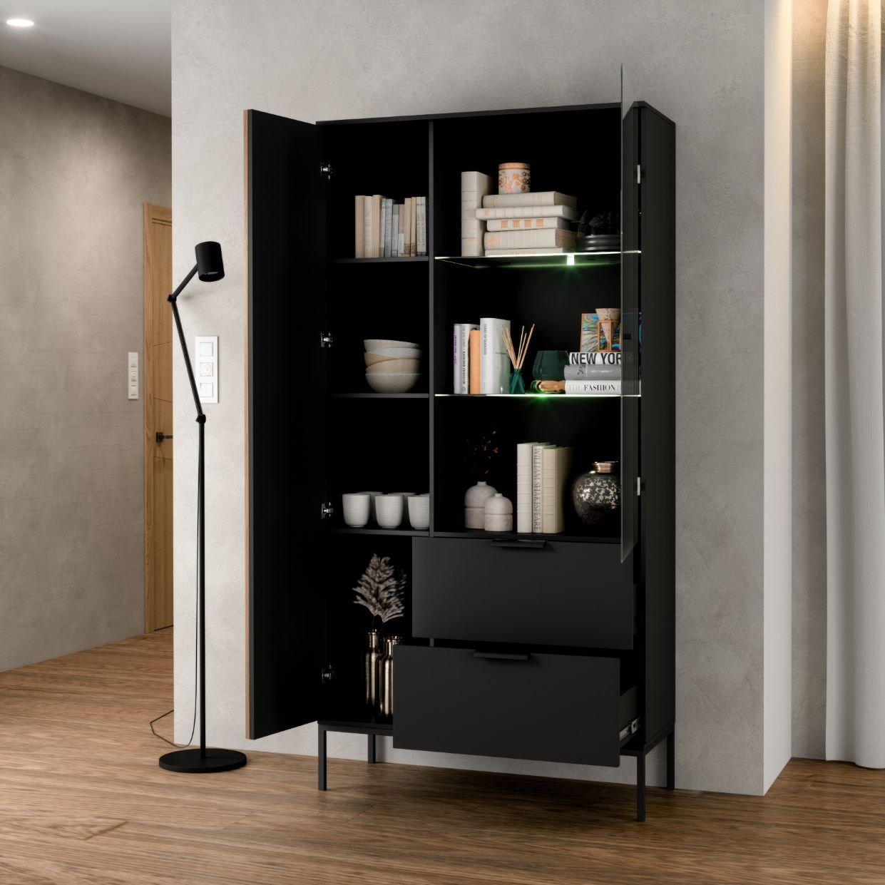 – Βιτρίνα με 2 γυάλινα ράφια και γυάλινη πρόσοψη