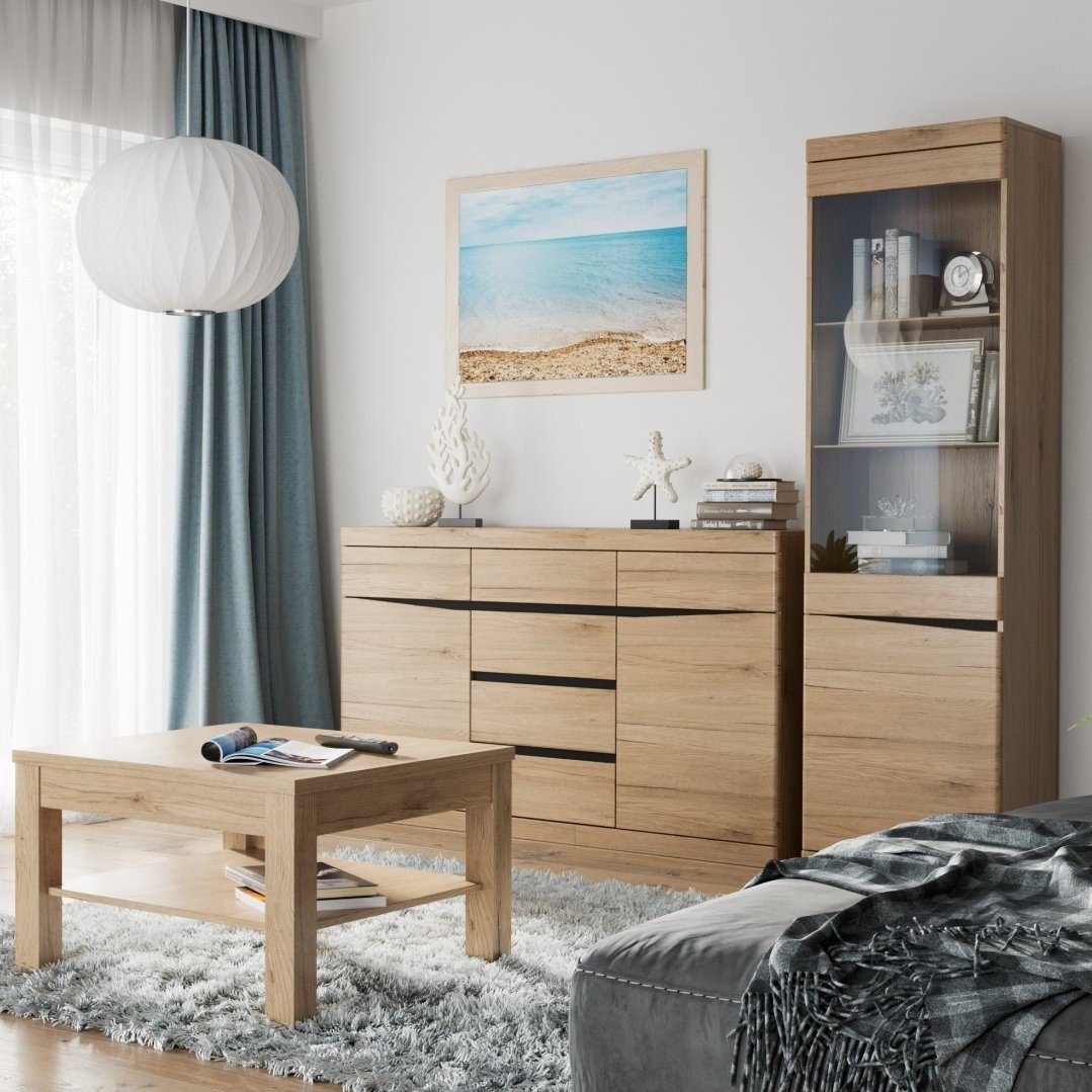 Μια βιτρίνα είναι μια πρακτική λύση για να ανανεώσετε το χώρο σας και να προσθέσετε επιπλέον αποθηκευτικές λύσεις στο σαλόνι ή την τραπεζαρία. Η βιτρίνα της σειράς Santiago προσφέρει ζεστή και γήινη αίσθηση στο χώρο και συνδυάζεται αρμονικά με όλα τα χρώματα διακόσμησης. Χαρακτηριστική λεπτομέρεια της σειράς Santiago αποτελούν τα σκαλιστά σχέδια σε βέγγε χρώμα που χρησιμεύουν και σαν λαβές.