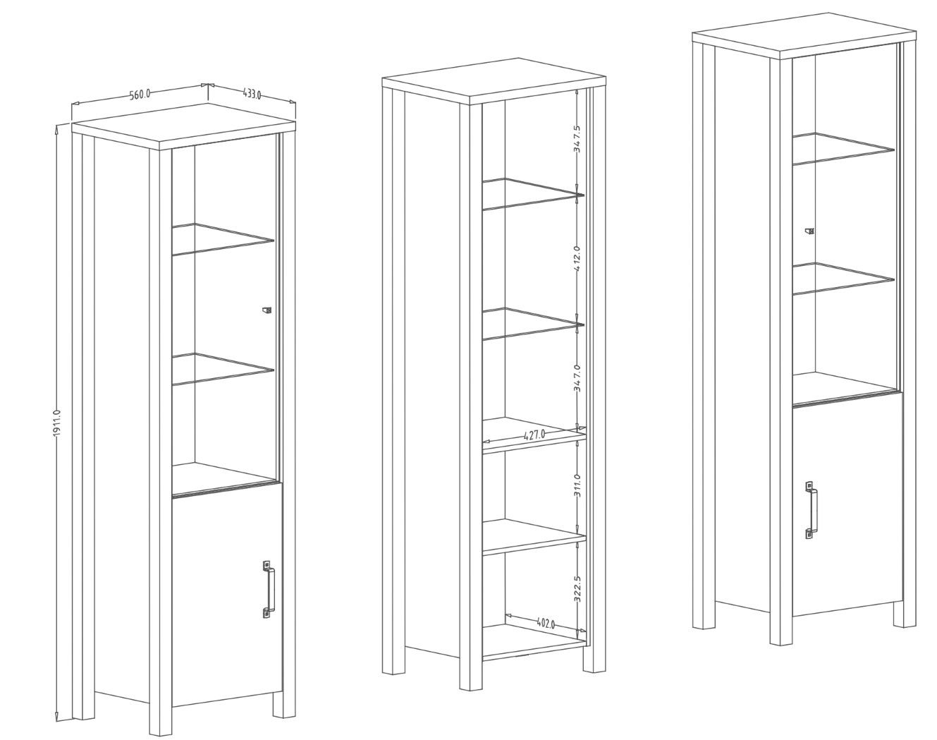 -Γυάλινη πόρτα στην πρόσοψη με γυάλινα ράφια στο εσωτερικό