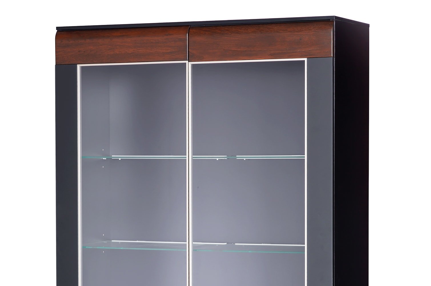 Βιτρίνα Viva διπλή κομψού σχεδιασμού σε όμορφη διχρωμία καφέ και μαύρου, που θα ταιριάξει σε κάθε χώρο