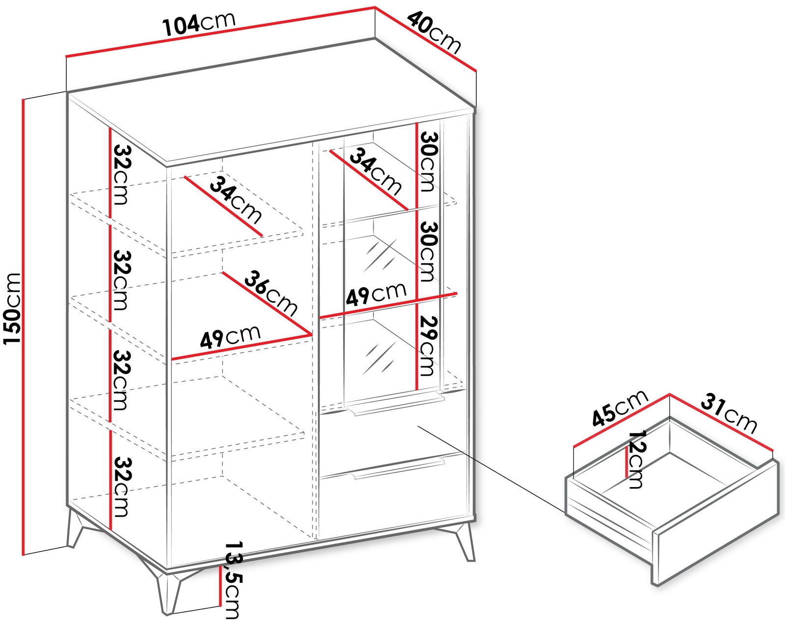 Η βιτρίνα Xylix αποτελεί μια κομψή και λειτουργική λύση αποθήκευσης, σχεδιασμένη για να συνδυάζει πρακτικότητα με εκλεπτυσμένο σχεδιασμό. Διαθέτει ισορροπημένη διάταξη από διαμερίσματα και συρτάρια, που επιτρέπουν την τακτοποίηση ρούχων, αξεσουάρ και άλλων αντικειμένων, διευκολύνοντας τη διατήρηση του χώρου τακτοποιημένου και χωρίς ακαταστασία. Ο μηχανισμός ανοίγματος “push-to-open” εξασφαλίζει εύκολη και άνετη πρόσβαση στον αποθηκευτικό χώρο της βιτρίνας.