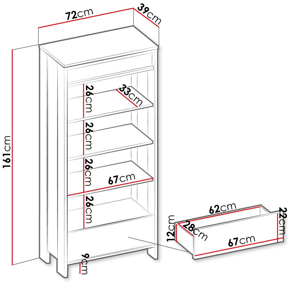 Βιβλιοθήκη Spot 1s, σε μινιμαλ σχεδιασμό, με ευρύχωρο αποθηκευτικό χώρο και πρακτικές διαστάσεις που την καθιστούν ιδανική επιλογή για κάθε υπνοδωμάτιο.