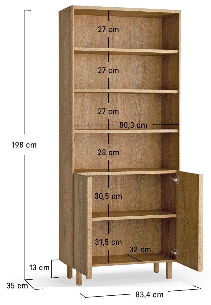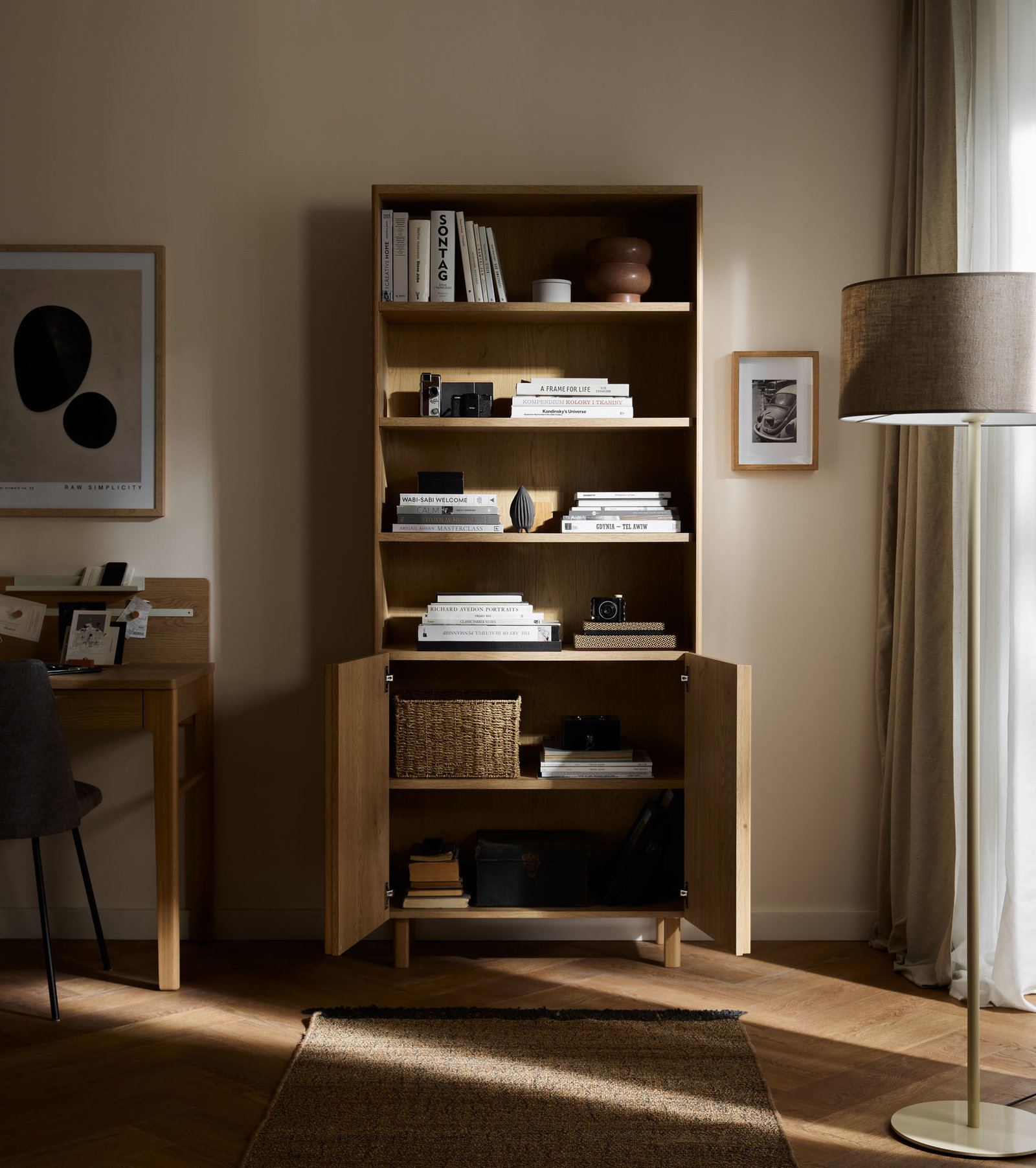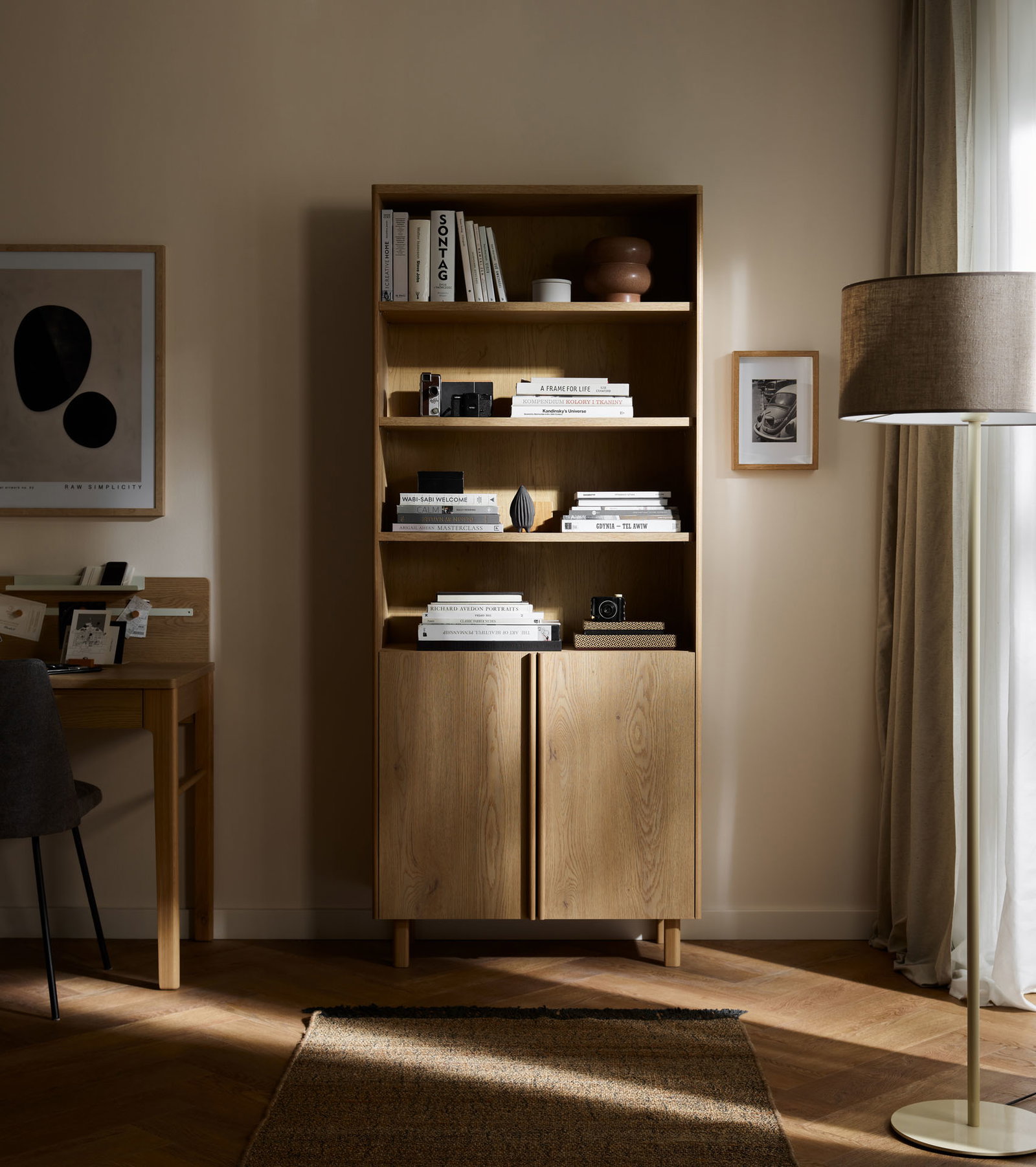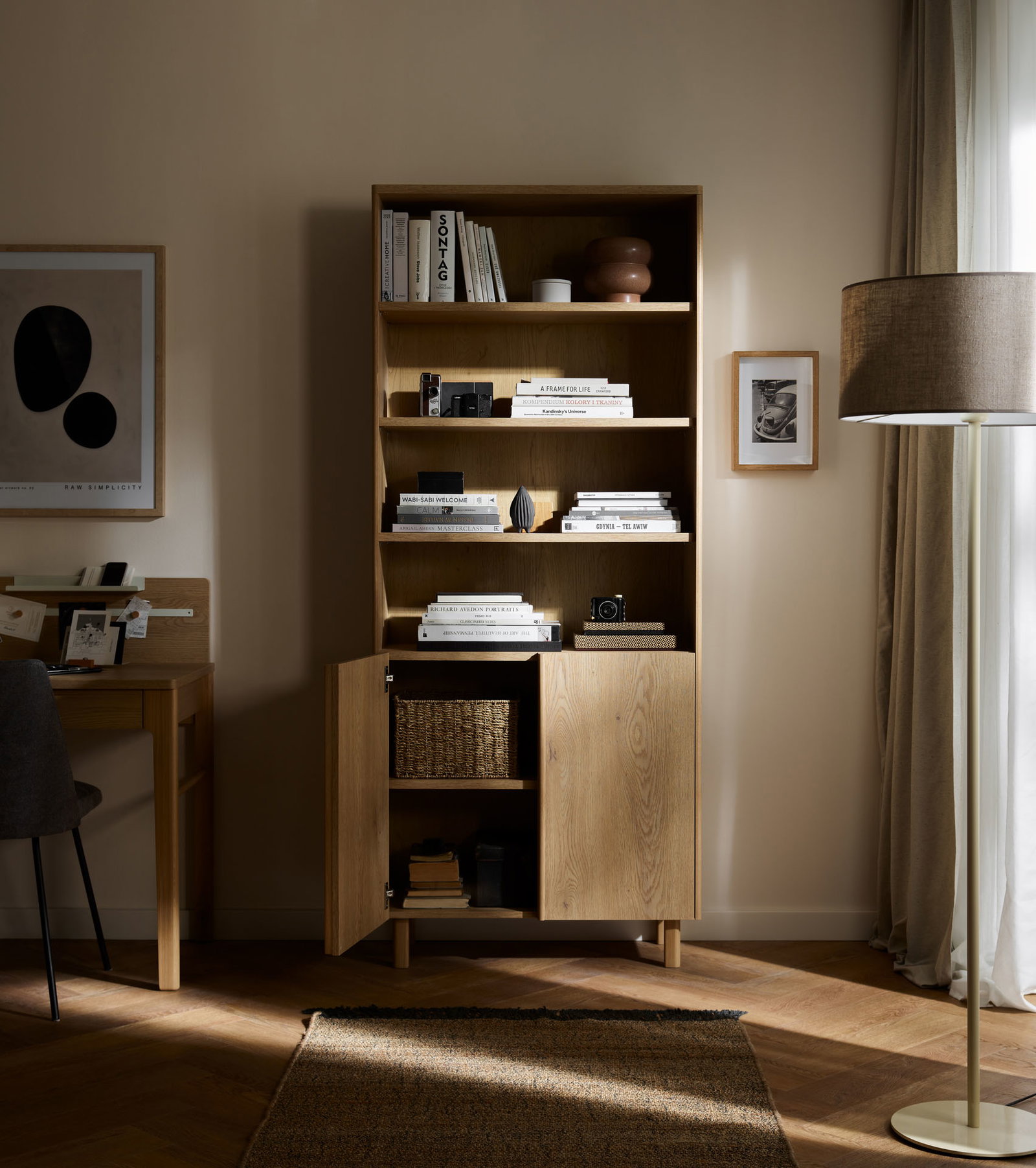 Η Βιβλιοθήκη Wellys αποτελεί μια σύγχρονη και στιβαρή λύση οργάνωσης, που συνδυάζει τον ανοιχτό σχεδιασμό με την αισθητική του φυσικού ξύλου. Η συγκεκριμένη βιβλιοθήκη είναι σχεδιασμένη για να προσφέρει μέγιστη λειτουργικότητα χωρίς να καταλαμβάνει πολύ οπτικό χώρο. Η δομή της, που βασίζεται στις καθαρές γραμμές και τα γεωμετρικά σχήματα, την καθιστά ιδανική για το σαλόνι, το γραφείο ή ακόμα και το υπνοδωμάτιο.