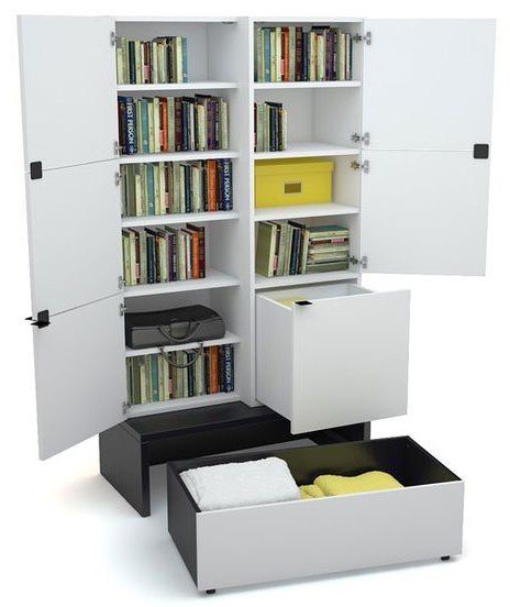 Μοντέρνα βιβλιοθήκη Young σε λευκό χρώμα, ώστε να συνδυάζεται εύκολα με τα υπόλοιπα έπιπλα του γραφείου σας.