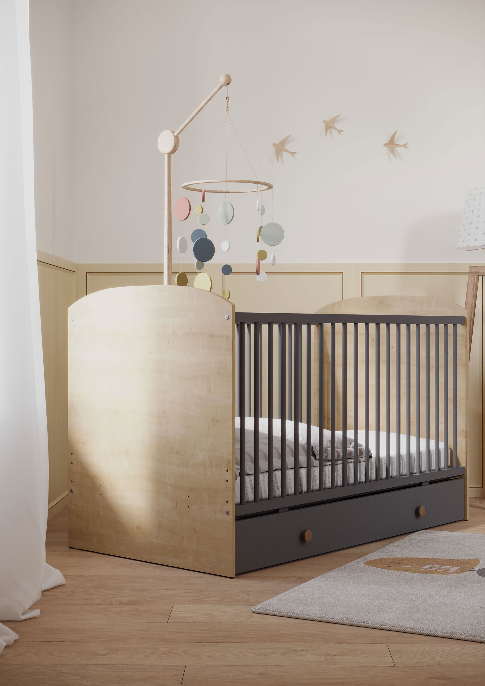 – Εύκολη μετατροπή σε παιδικό κρεβάτι (οι τραβέρσες πωλούνται χωριστά)