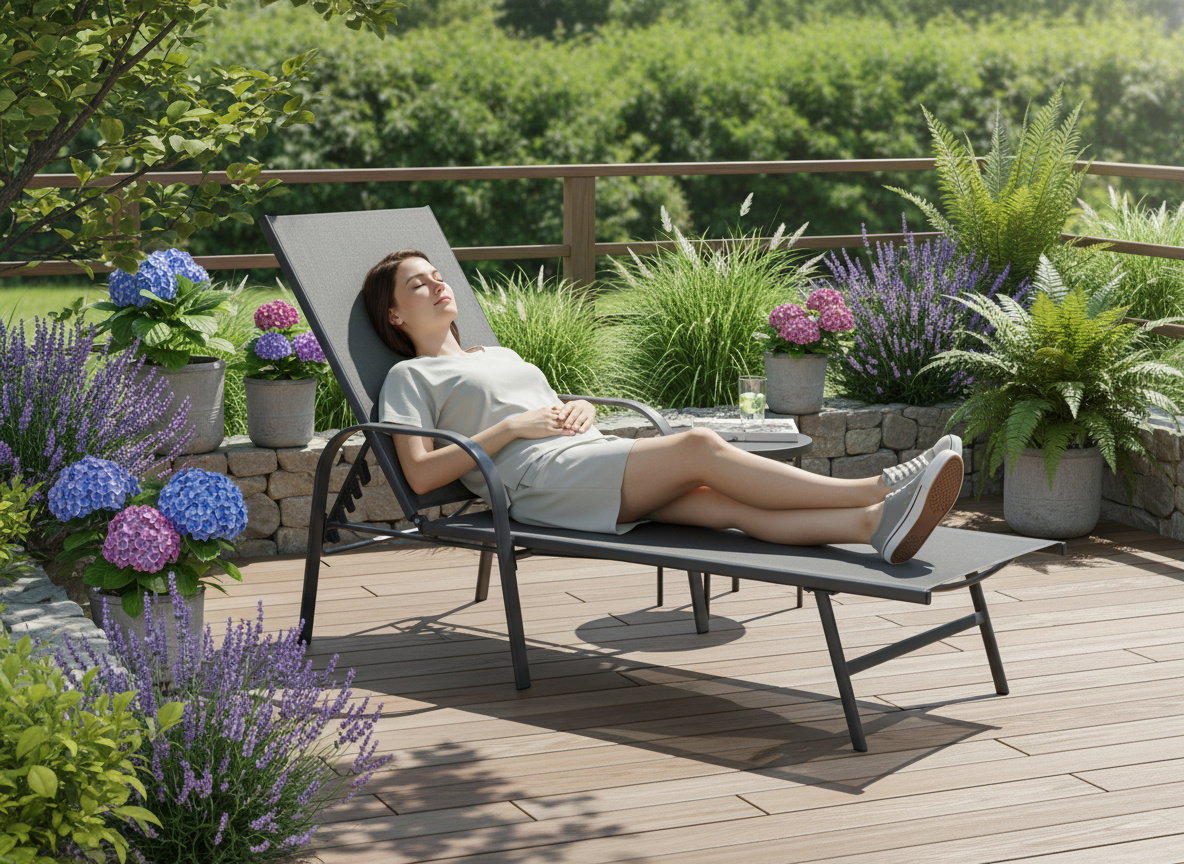 Ξαπλώστρα Gerbera, σε μοντέρνο σχεδιασμό με καμπύλες στον σκελετό, και 5 επίπεδα ανάκλισης πλάτης. Ιδανικη επιλογή για τον κήπο ή την παραλία.