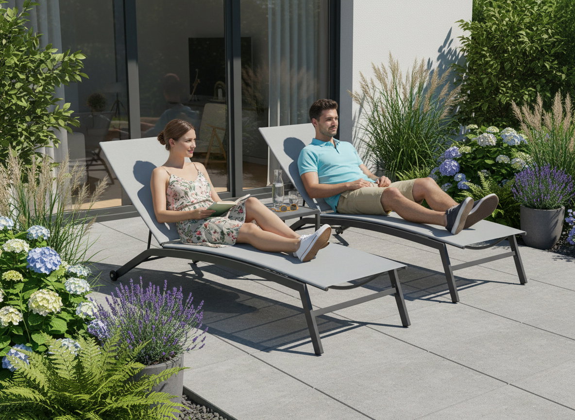 Ξαπλώστρα Inflecto, σε μοντέρνο σχεδιασμό με καμπύλες στον σκελετό, και 5 επίπεδα ανάκλισης πλάτης. Ιδανικη επιλογή για τον κήπο ή την παραλία.