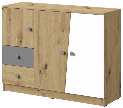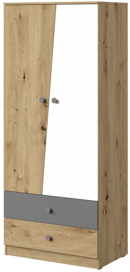 Ντουλάπα Memone δίφυλλη-Φυσικό-Λευκό-Γκρι