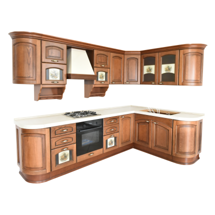 Ιταλική Κουζίνα Γωνιακή Δρυς με Πάγκο & Απορροφητήρα