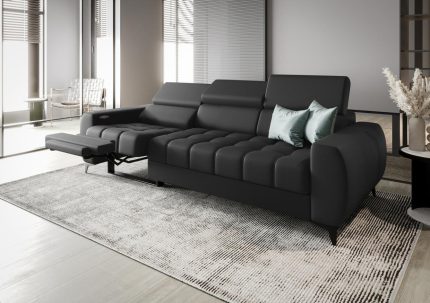 Καναπές Calyra Relax Lthr Τριθέσιος-Μαύρο